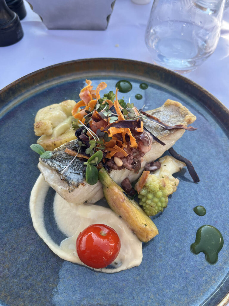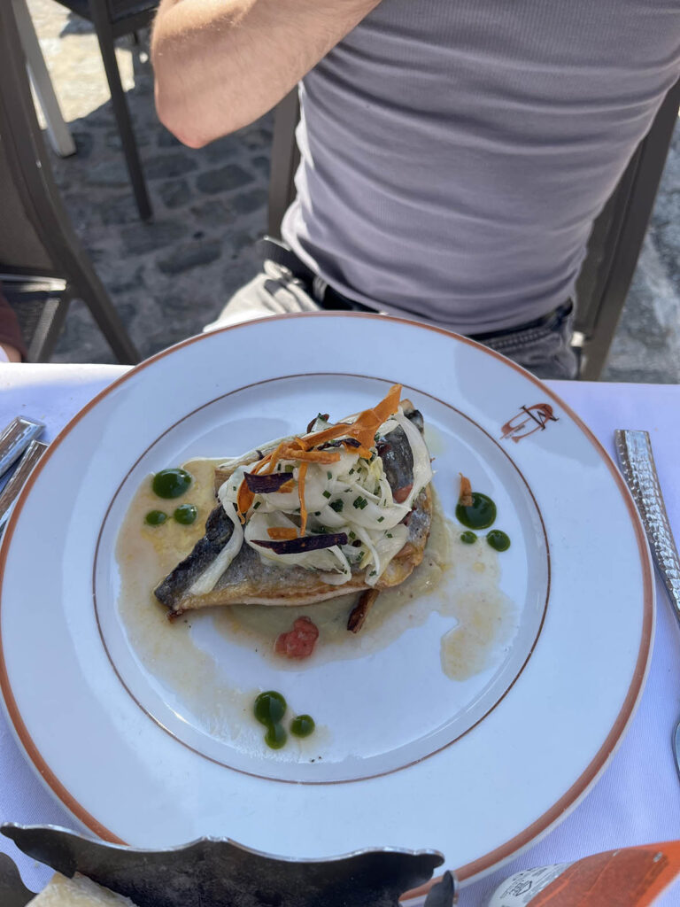 メインは魚。タラと鯛。タイを選んだのは息子。なんか生意気。このレストラン、専用ボートクルーズの客を迎えに行く専用ボートがある。クルーズといっても大型ではなく、映画で金持ちが乗ってるような中型のボートでした。
