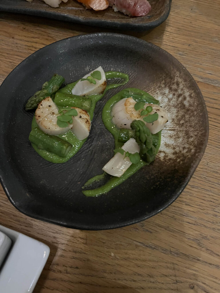 ホタテとアスパラ。