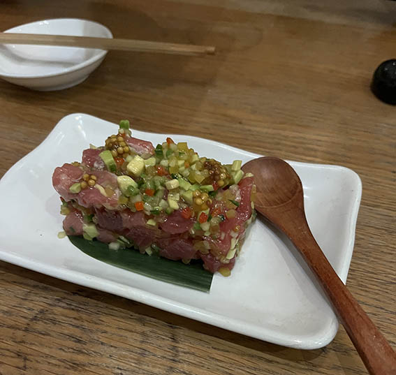 3種のマグロ叩き。美味しいけどこのスプーン、大変取りにくい。