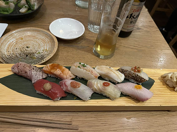 いくつか前菜を頼み、それぞれお任せで私は9貫、夫は12貫、息子は15貫してというチョイス。