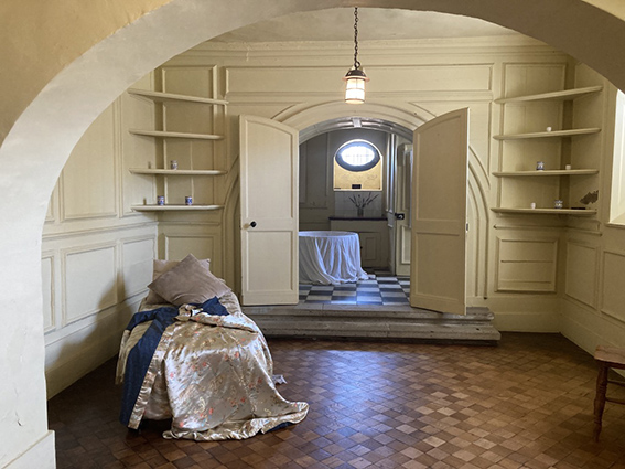 このエリザベス、なんでも流行の最先端を行っていた女性だったらしく、その例のひとつがこのお風呂場。階段を下がっていくのでオンスイートバスルームではありませんが。