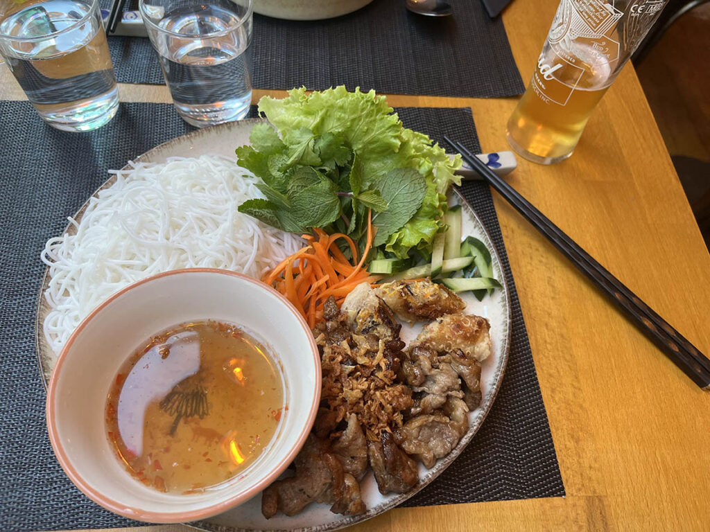ベトナム人アーティストの影響かベトナム料理が食べたくなって、私はブン・チャー、夫は焼飯。