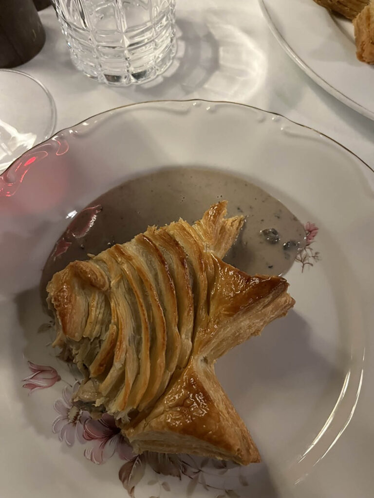 パイは二人前。トリュフソースをかけてサーブされます。おばあちゃんもトリュフソースをかけた??おばあちゃんゴージャスだな。