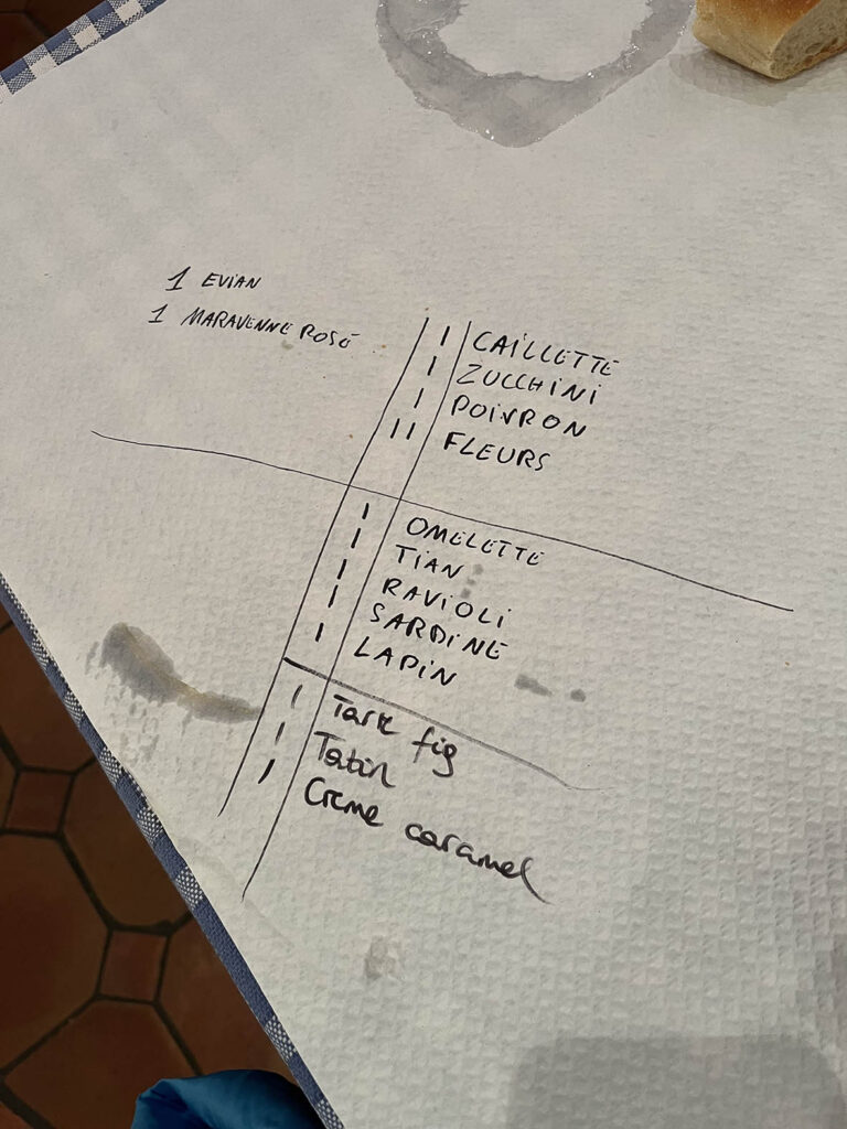 友人宅てアペリティフののち、いつもの定番レストランへ。役所広司さんも来そう。カンヌ映画祭の時かな?