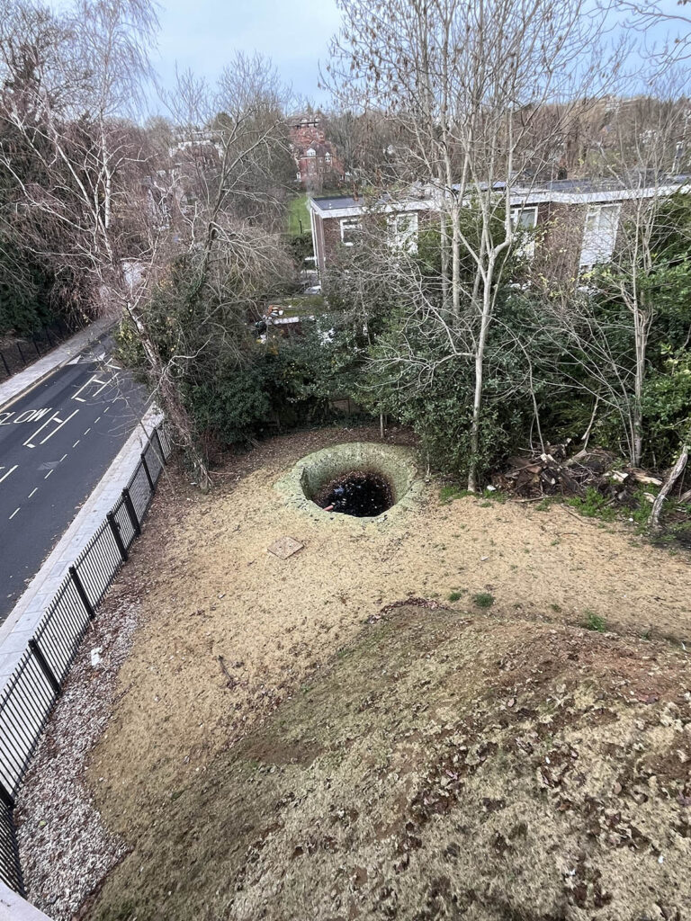 途中で見た不思議な穴。これは池?井戸?
