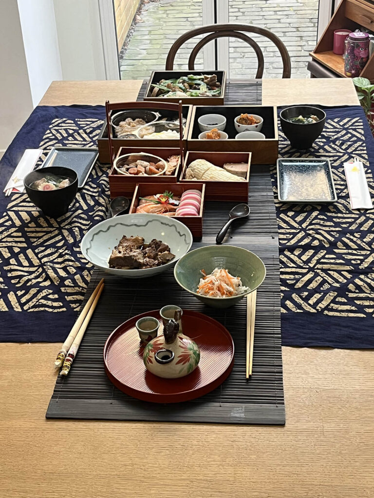 その代わりと言ってはなんですが頑張っておせち的なものを用意。と言っても、重箱に魚屋さんで調達したおせちを詰めただけなんですが。